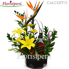 Whisky Johnnie Walker Black Label 750ml decorado con toque de hermosas flores primaverales.