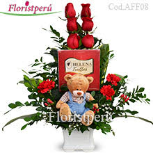 Iluminale el día con este arreglo de 6 hermosas rosas + deliciosas truffas de chocolate + peluche (imagen referencial), en base de ceramica.