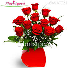 Arreglo floral con 12 rosas y follajes en base de cerámica.
