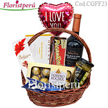 Canasta contiene:- Bombones Ferrero Rocher - 3 unidades de Bombones Baci- Aceitunas rellenas- Vino tinto Navarro correas- Peccanroll- Tejas Helena x 6- Chocolates Belgian 65g- Globo mediano 9"* Disponible solo para la ciudad de Lima.