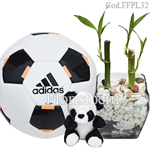Lucky Bamboo in a glass vase with a little panda bear (10cm high) and futbol ball Adidas Nª5.