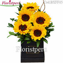 Box with 5 sunflowers.